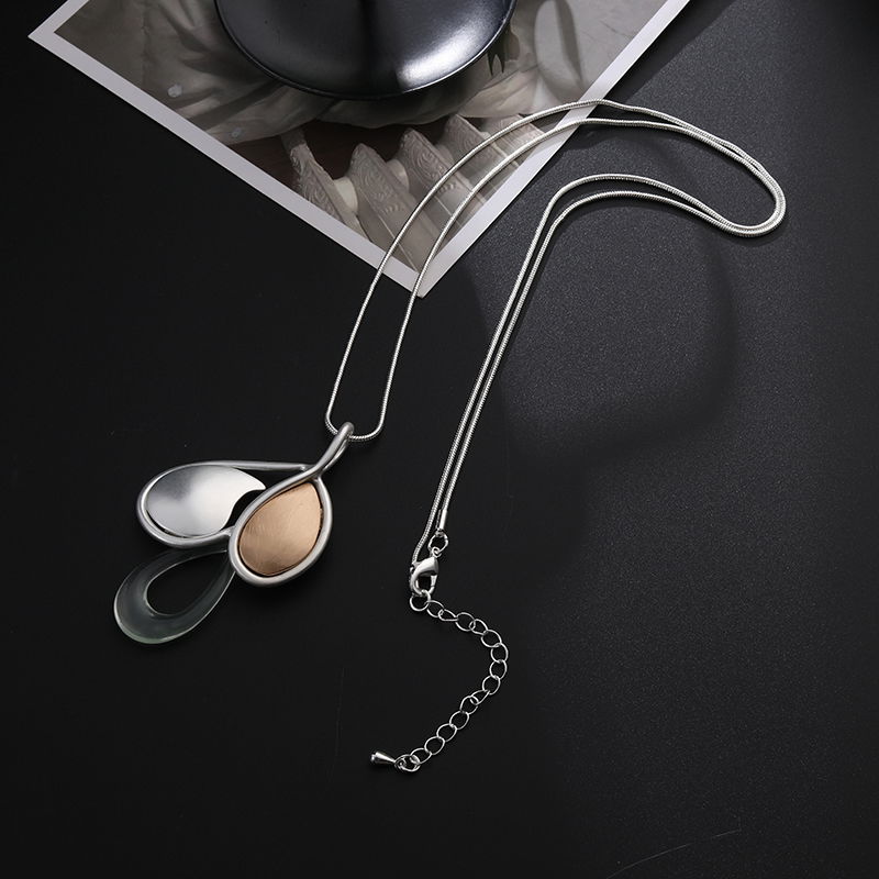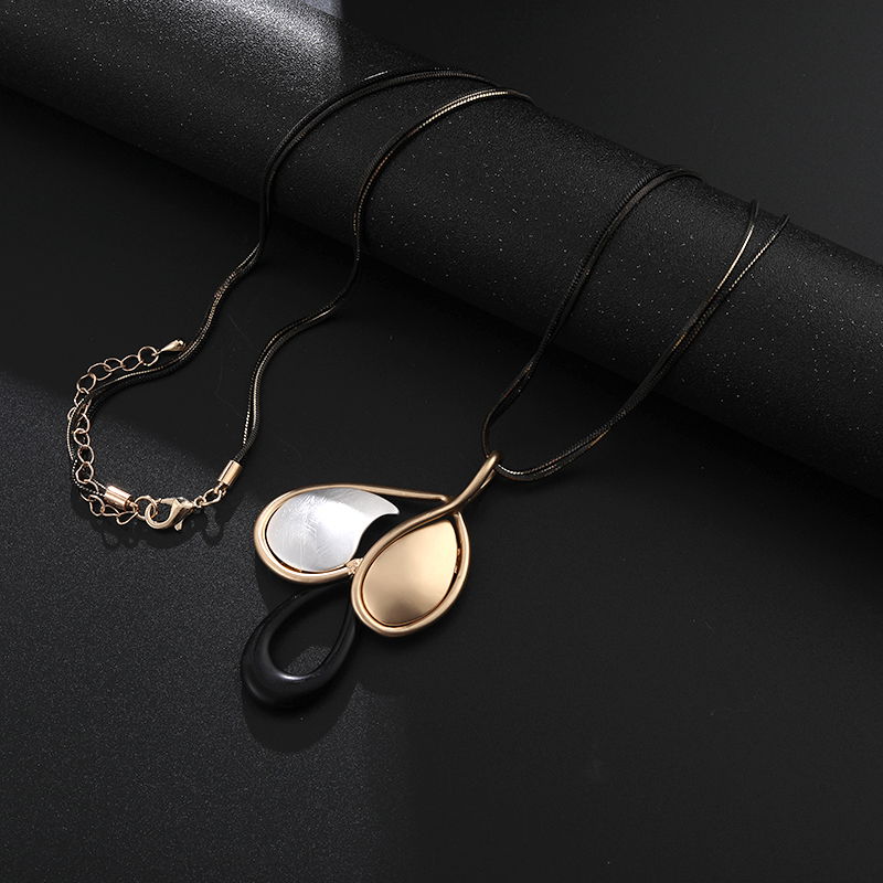 El diseño presenta un colgante con formas tipo pétalos de acabado suave, combinando tonos dorados y claros que aportan armonía y un efecto visual refinado. Su estética orgánica lo convierte en un collar versátil, perfecto para acompañar looks diarios o más elegantes.