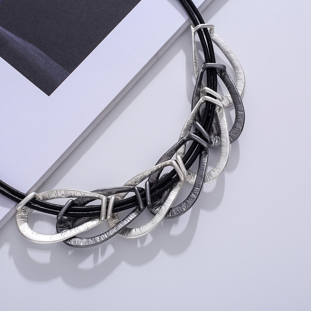 Su estética contemporánea y su paleta de tonos neutros convierten al Collar Grey en un accesorio atemporal y versátil. Es ideal para looks urbanos, modernos o más elegantes, aportando personalidad con un solo detalle.