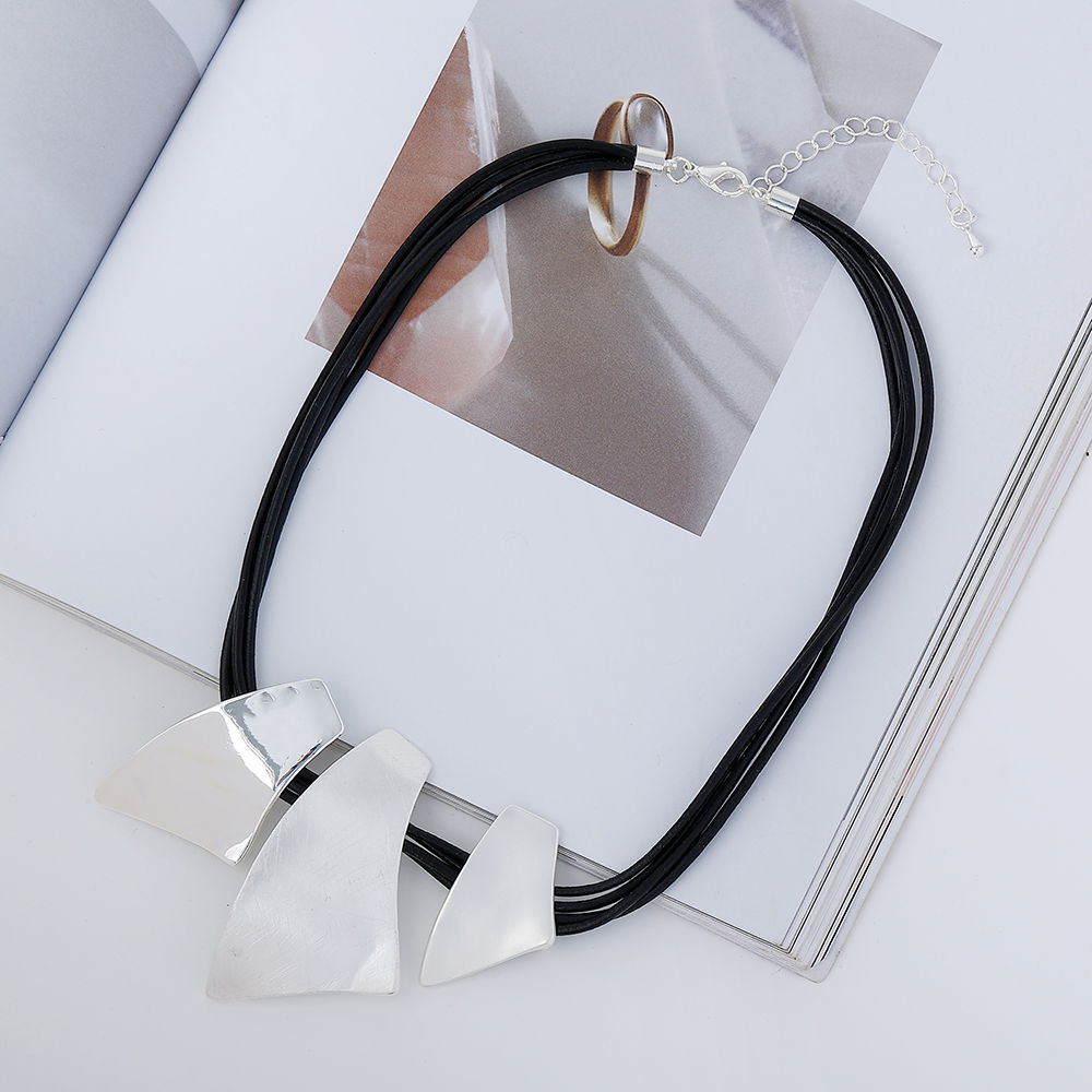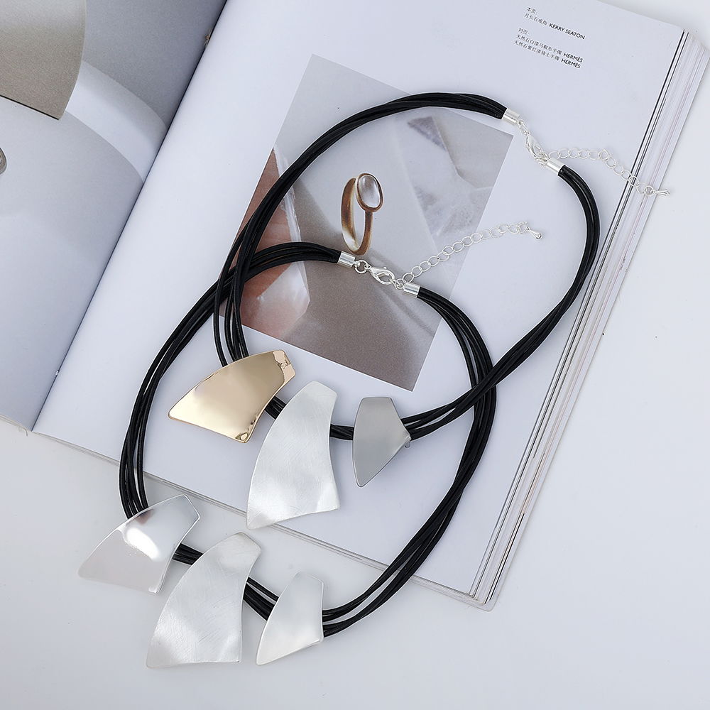 El diseño combina un cordón oscuro con piezas colgantes de formas orgánicas en tonos claros y rose, logrando un contraste equilibrado y elegante. Su estética contemporánea lo convierte en una opción versátil para looks urbanos, casuales o más sofisticados.