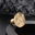 Anillo de diseño Luisa con formato redondo, una pieza elegante y contemporánea que se destaca por su superficie texturada y su estética minimalista. Ideal para sumar un toque de diseño sofisticado a cualquier look.