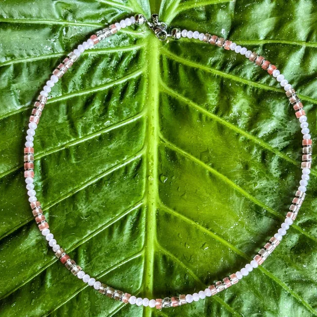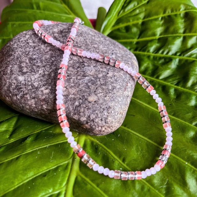 Collar Cuarzo Sandía y Hematite 4mm con Acero Quirúrgico | NEMArmonia
