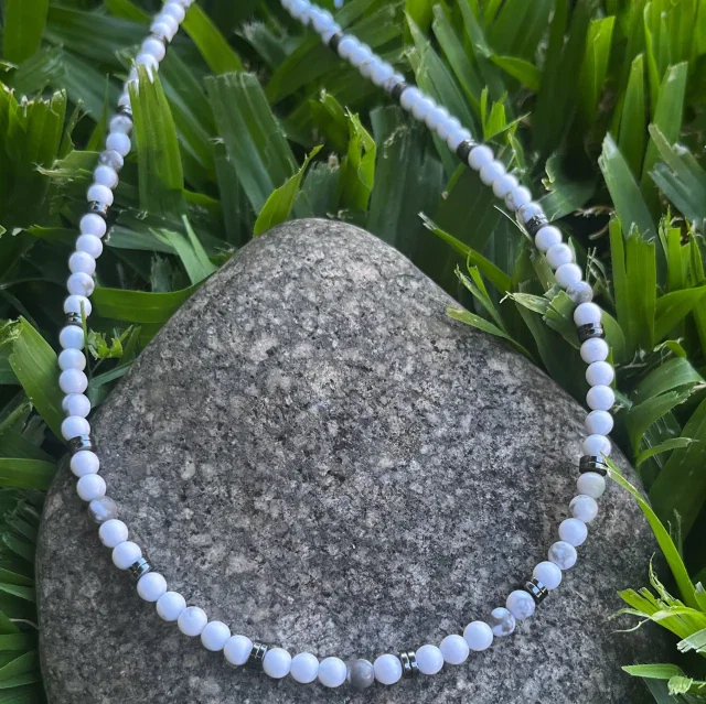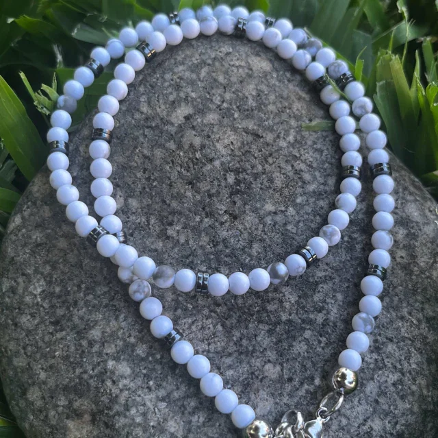 Collar Howlite Blanca y Hematite 4mm con Acero Quirúrgico | NEMHowHem