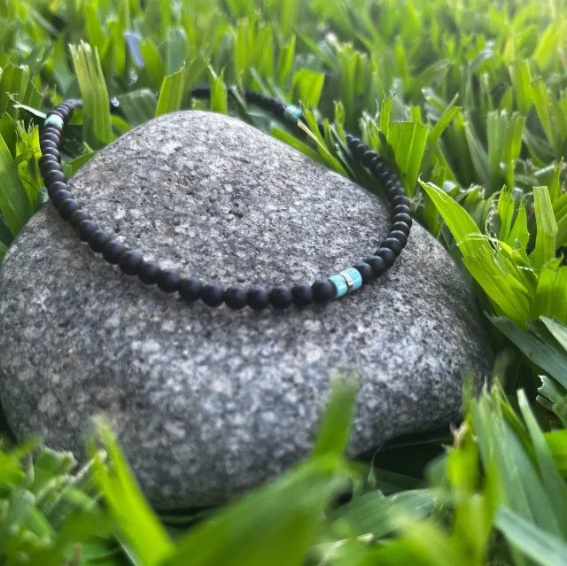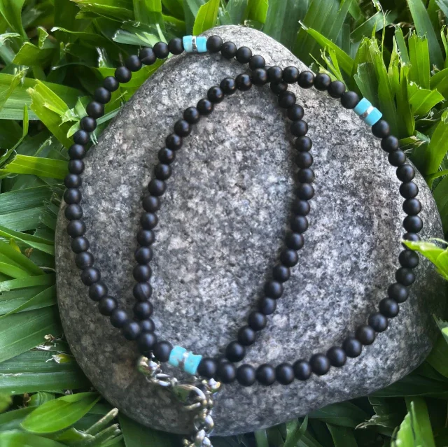Collar Ónix Mate, Turquesa Natural y Hematite 4mm | NEMOnixTurHem