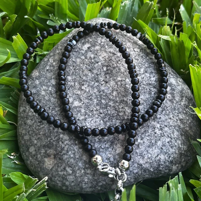 Collar Ónix Mate y Ágatas Negras 4mm con Acero Quirúrgico