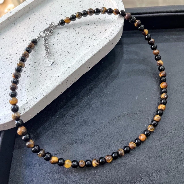 - Collar de piedras naturales ojo de tigre y turmalina negra